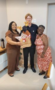 A subsede da UPPE-Sindicato completou, no mês de fevereiro, um ano de atuação no município de Itaperuna. Na ocasião, o prof. Dr. Stelling foi homenageado pela diretora da unidade, professora Jussara de Jesus, e a colaboradora Elane Fernandes. O gesto respresenta a gratidão dos filiados da região, pela instalação da subsede no município.