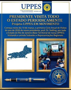 A primeira parada do projeto UPPES EM MOVIMENTO aconteceu no município de Itaperuna, na região Noroeste Fluminense. A iniciativa marca o início de uma série de visitas institucionais que o presidente da União dos Professores Públicos do Estado – Sindicato (UPPES) realizará em diversas regiões do estado do Rio de Janeiro ao longo de 2026.
